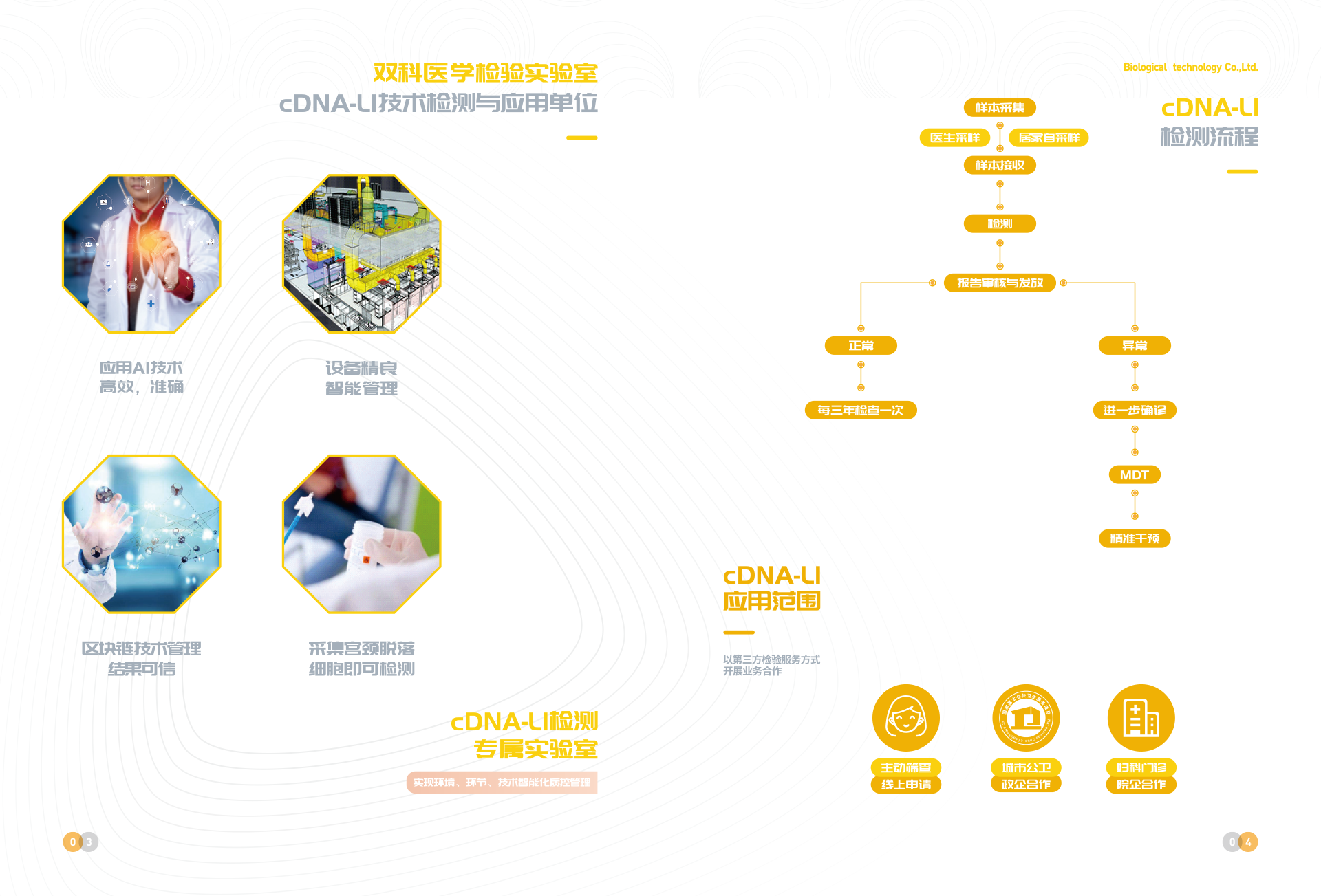 深圳市雙科生物科技有限公司創(chuàng)立于2012年12月12日,是按照國家“十二五”、“十三五”科技創(chuàng)新規(guī)劃、《中國防治慢性病中長期規(guī)劃(2017-2025年)》與《“健康中國2030”規(guī)劃綱要》等政策要求,以“健康中國所系,呵護(hù)生命相托”為公司使命,在“十二五”及“十三五”期間公司先后完成技術(shù)體系建模與試運(yùn)行、服務(wù)體系構(gòu)建與運(yùn)行、腫瘤綜合防控體系建立與實(shí)施,在高新生物技術(shù)領(lǐng)域,形成了具有完全自主創(chuàng)新與獨(dú)立知識產(chǎn)權(quán)的常見腫瘤液態(tài)活檢技術(shù)、體細(xì)胞技術(shù)、醫(yī)學(xué)AI技術(shù)、宮頸癌預(yù)警cDNA-L1技術(shù)、腦卒中早期預(yù)警MTHFR/MTRR技術(shù) 、 N-MDT技術(shù)、“防-控`-保”技術(shù)等和服務(wù)體系。